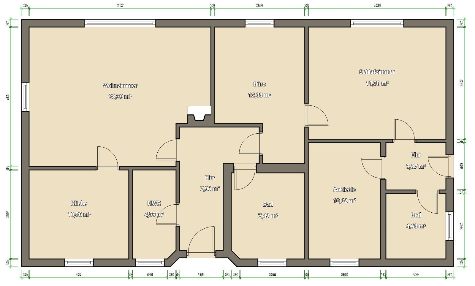 Das Einfamilienhaus, dass in Massivbauweise errichtet wurde, hat ca. 130m² Wohnfläche.