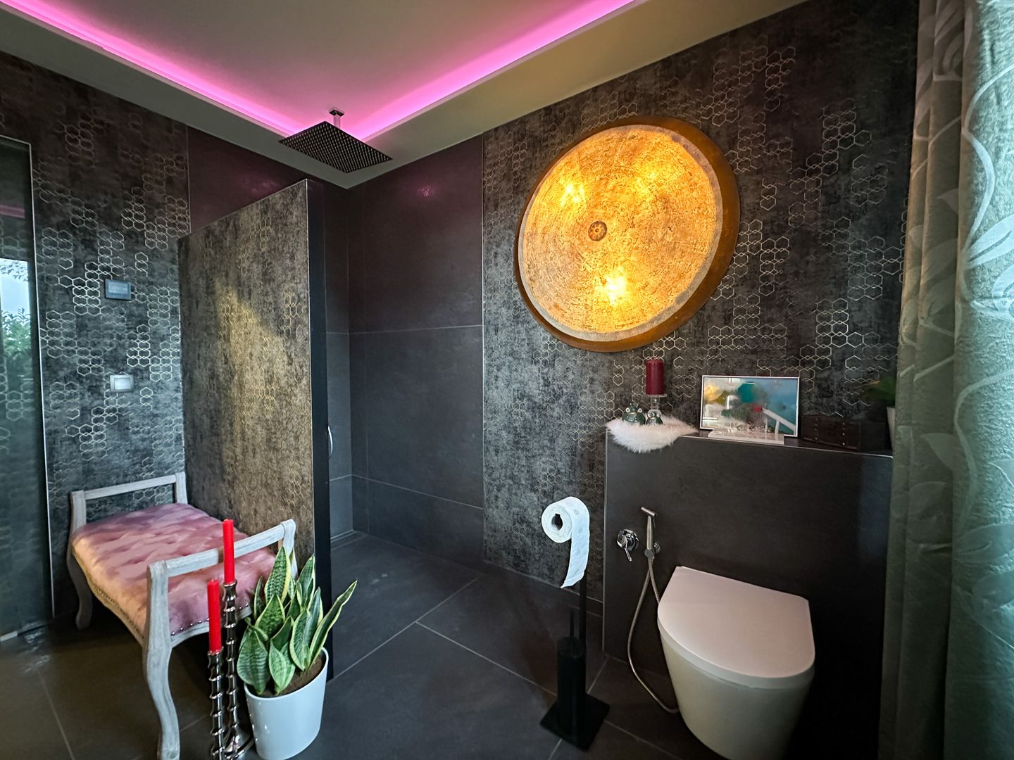 Weiter geht es vom Flur aus in ein traumhaftes Badezimmer mit offener Dusche, dieses wurden 2024 komplett saniert und ist ein echter Hingucker.