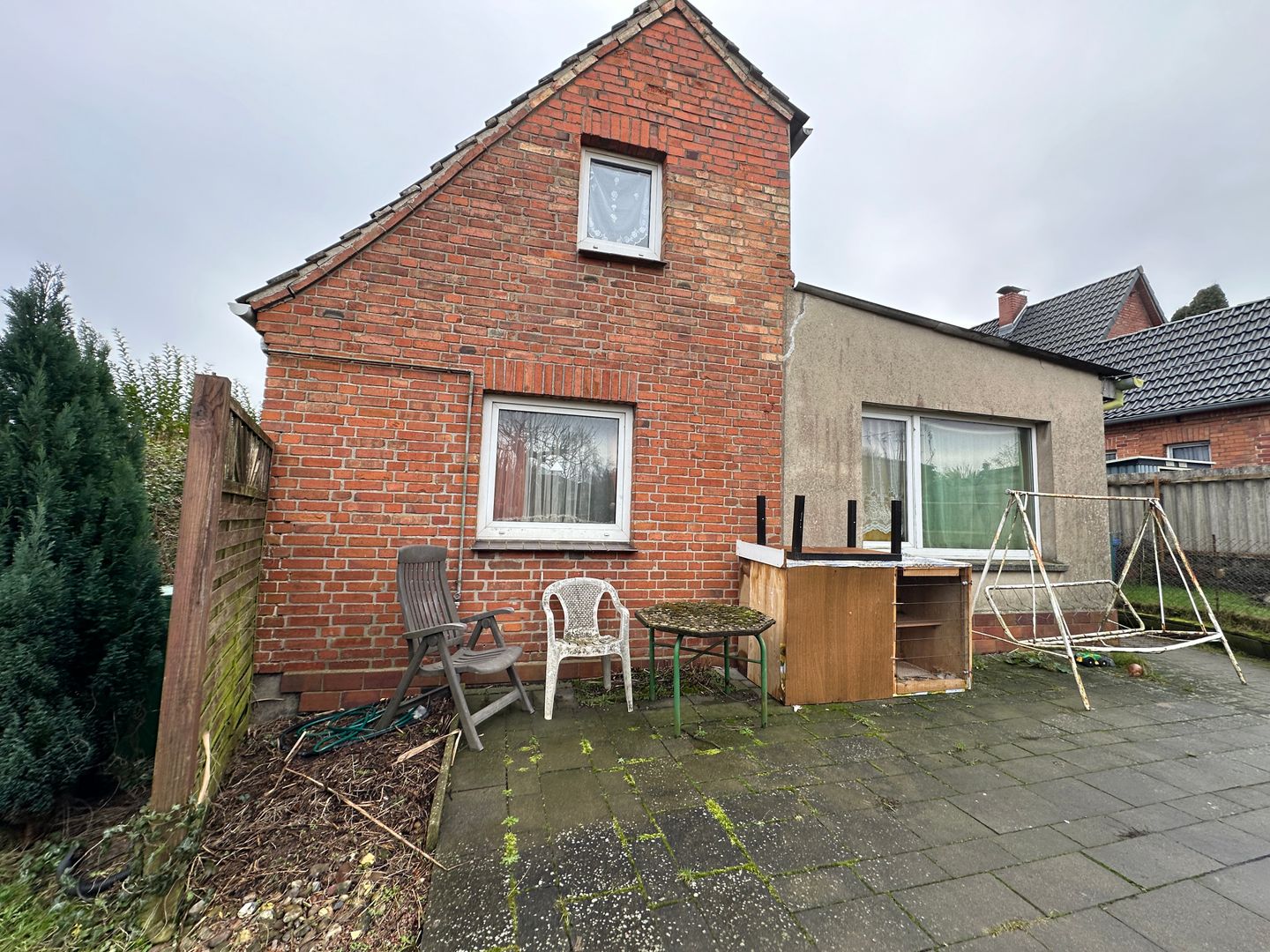 Im Erdgeschoss befindet sich ein Wohnzimmer mit Kamin, 2 Schlafzimmer, die derzeitige Küche, sowie ein WC. Das Duschbad ist derzeit als Durchgangsbadezimmer genutzt, hier befindet sich auch die Heizung.