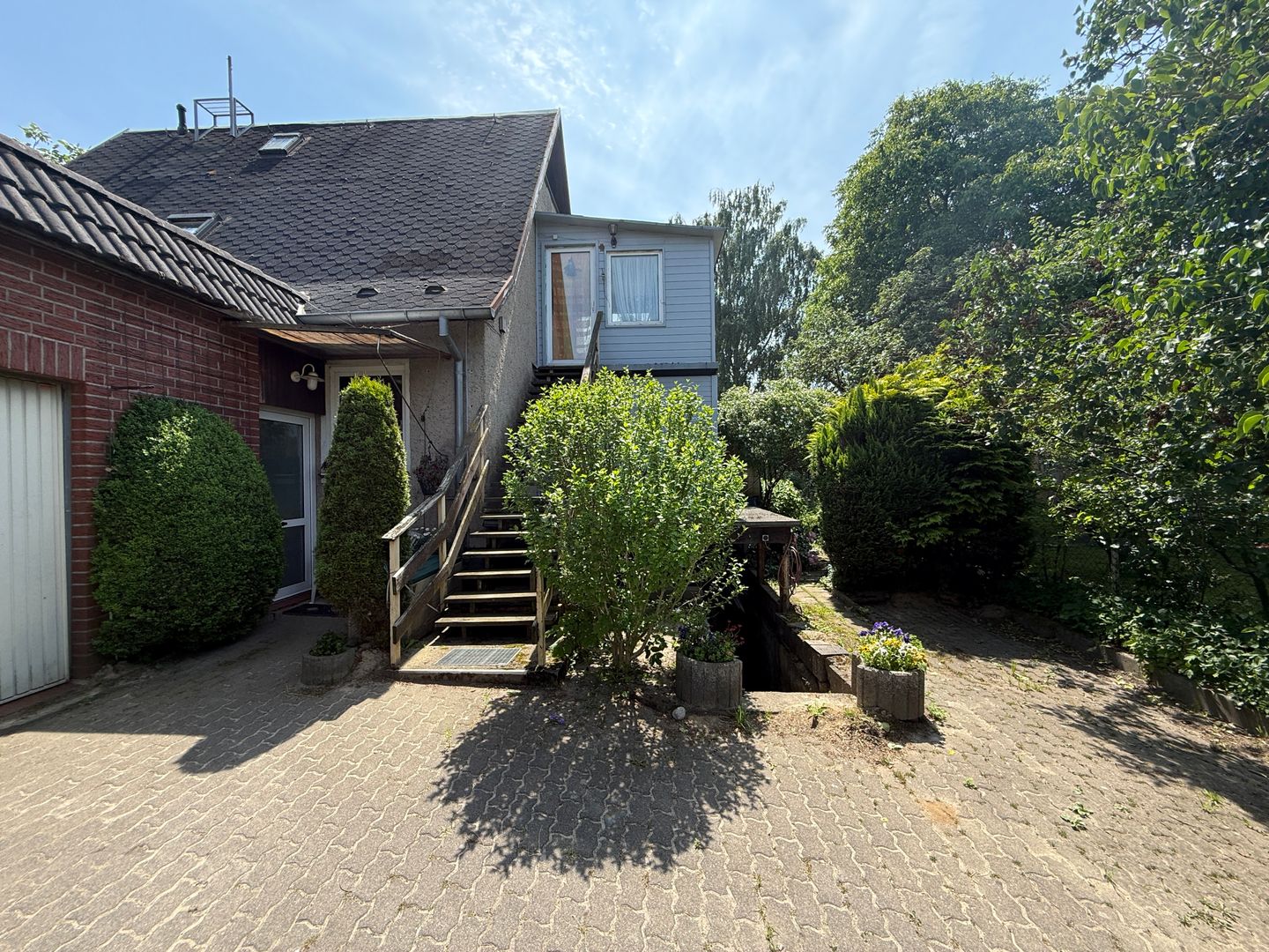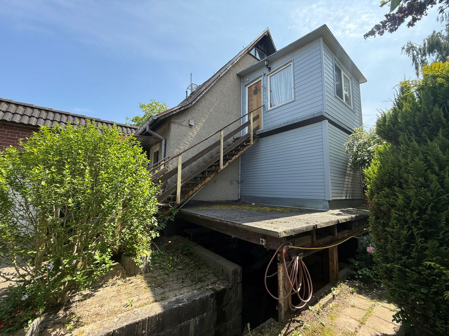 Über eine separate Treppe am Haus gelangt man ins Obergeschoss.