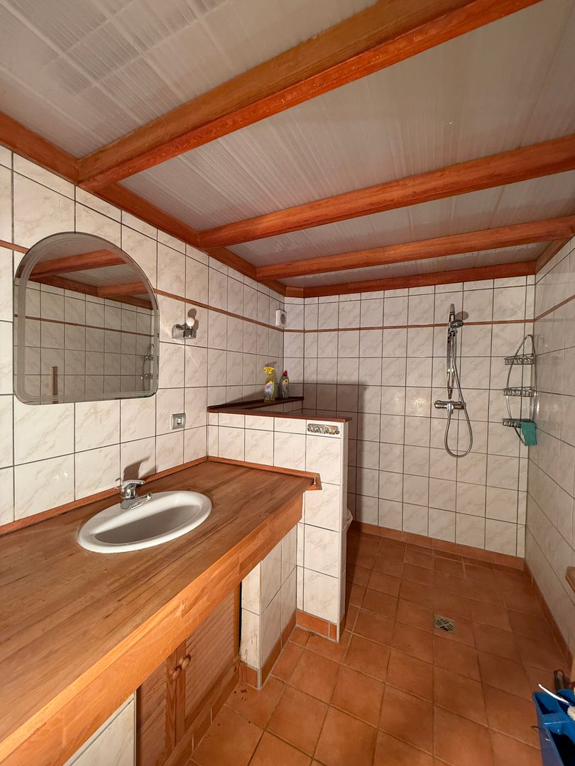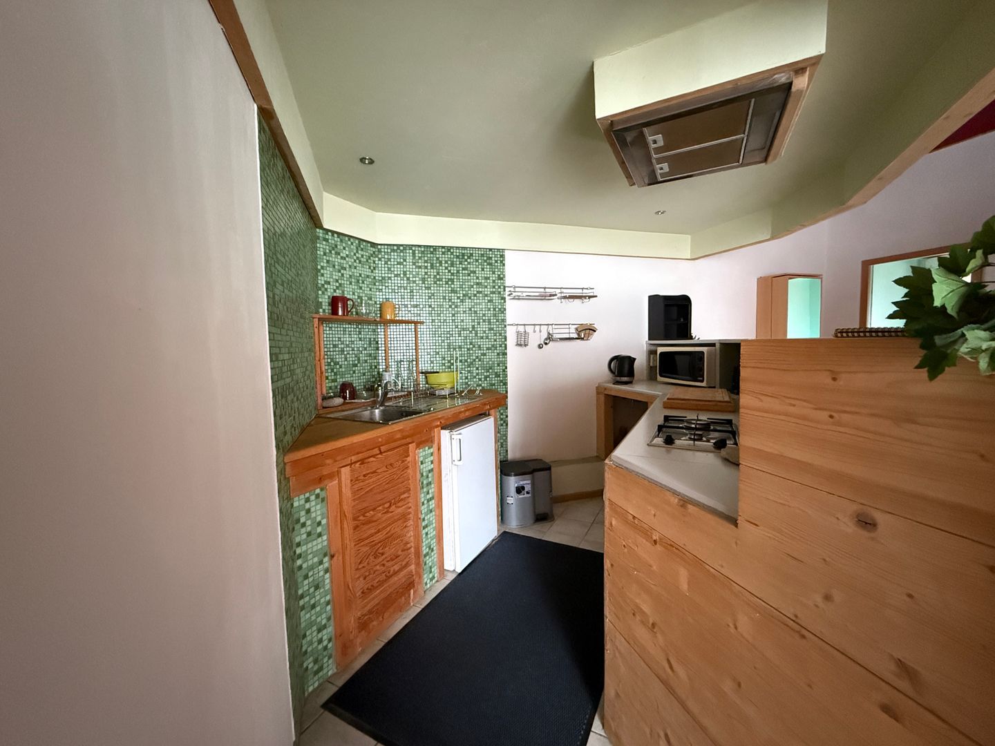 Das Objekt ist sehr vielseitig Nutzbar. Im vorderen Bereich des Hauses war früher eine Firma ansässig. Die Büroräume wurden umgestaltet und werden derzeit als Wohnraum für Gäste genutzt. Mit einem Schlafzimmer einem offenen Küchen-Wohnbereich und einem Ebenerdigen Badezimmer bietet es nun den platz für eine perfekte eigenständige Wohnung.