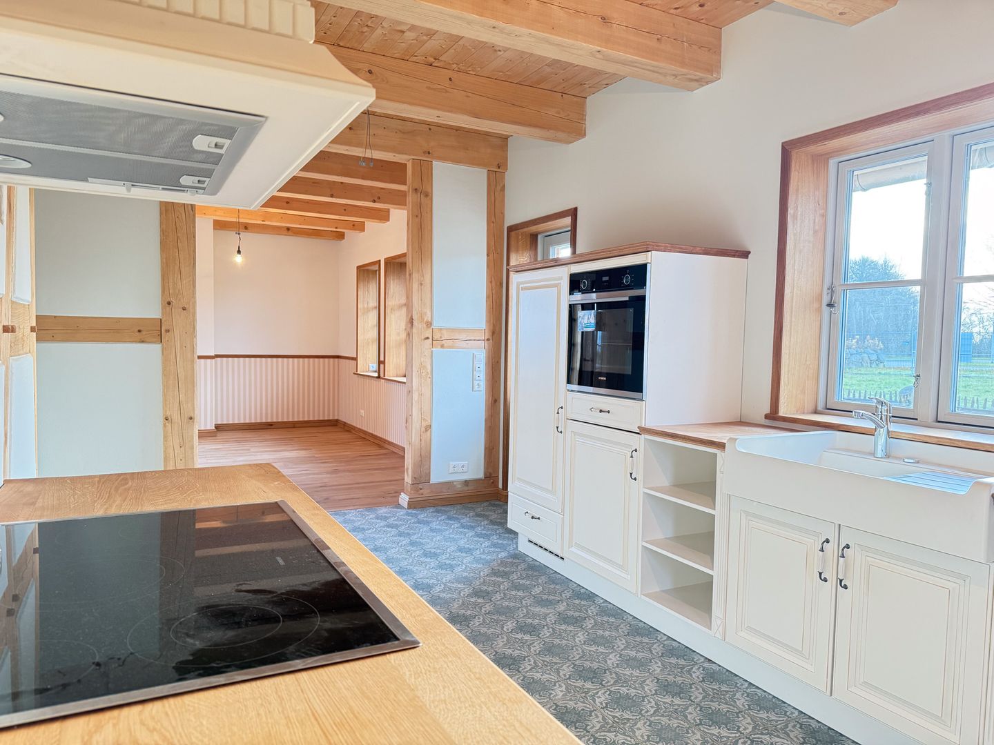 -sichtbare Holzbalkendecke