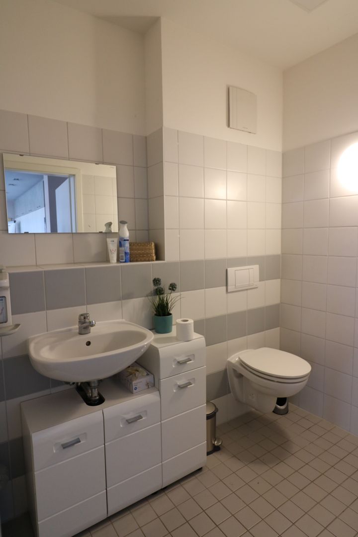 Die Gewerbefläche verfügt über ca. 112qm und teilt sich in eine Ausstellungsfläche mit kleinem Büro, einem WC und einem Keller, als Abstellmöglichkeit, auf.
