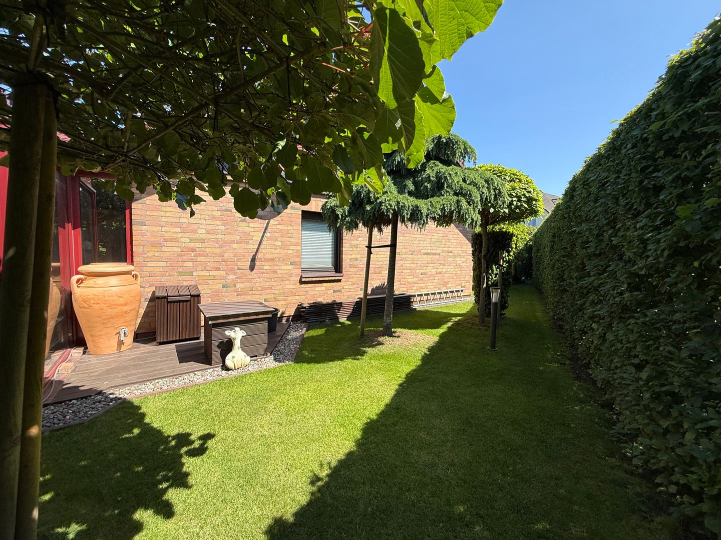 Das französisch/italienisch angelegte Grundstück lädt zum Entspannen und Verweilen ein und wurde mit viel Liebe zum Detail angelegt und vervollständigt.