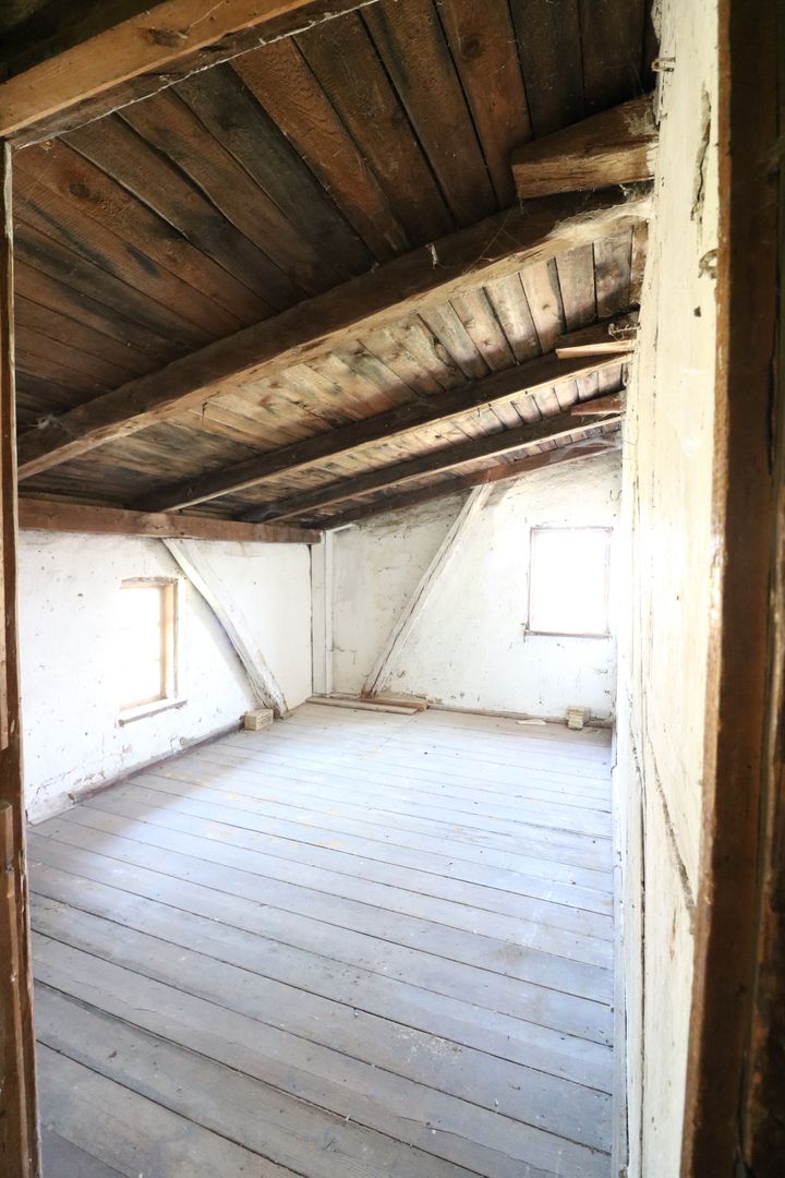 Das Dachgeschoss erreichen Sie über eine Treppe im Eingangsbereich des Haupthauses. Im Obergeschoss befinden sich derzeit 5 abgetrennte Zimmer und ein großzügiger Flur. Ein Zimmer verfügt über einen Ofen , ein weiteres über einen Heizkörper.