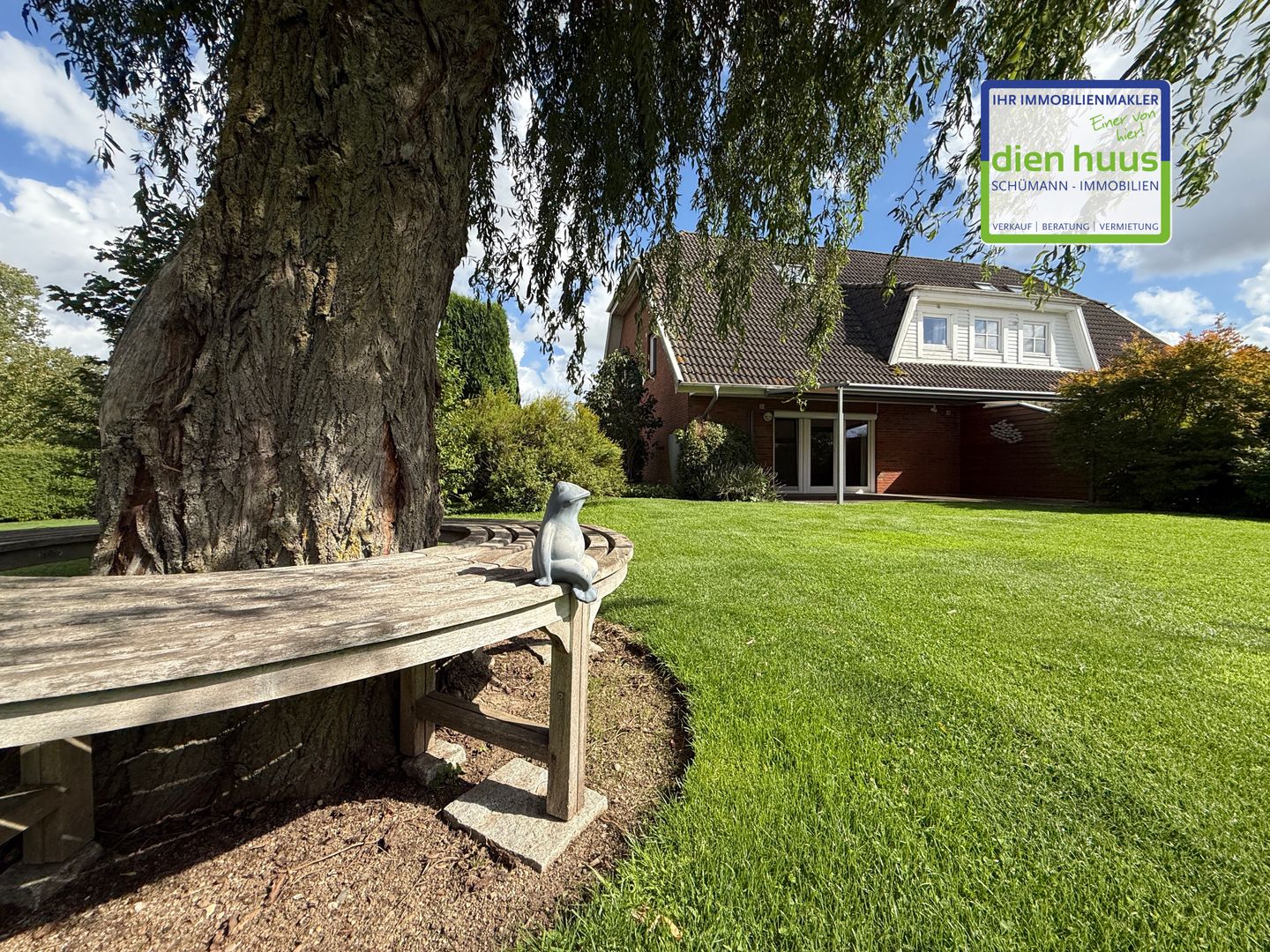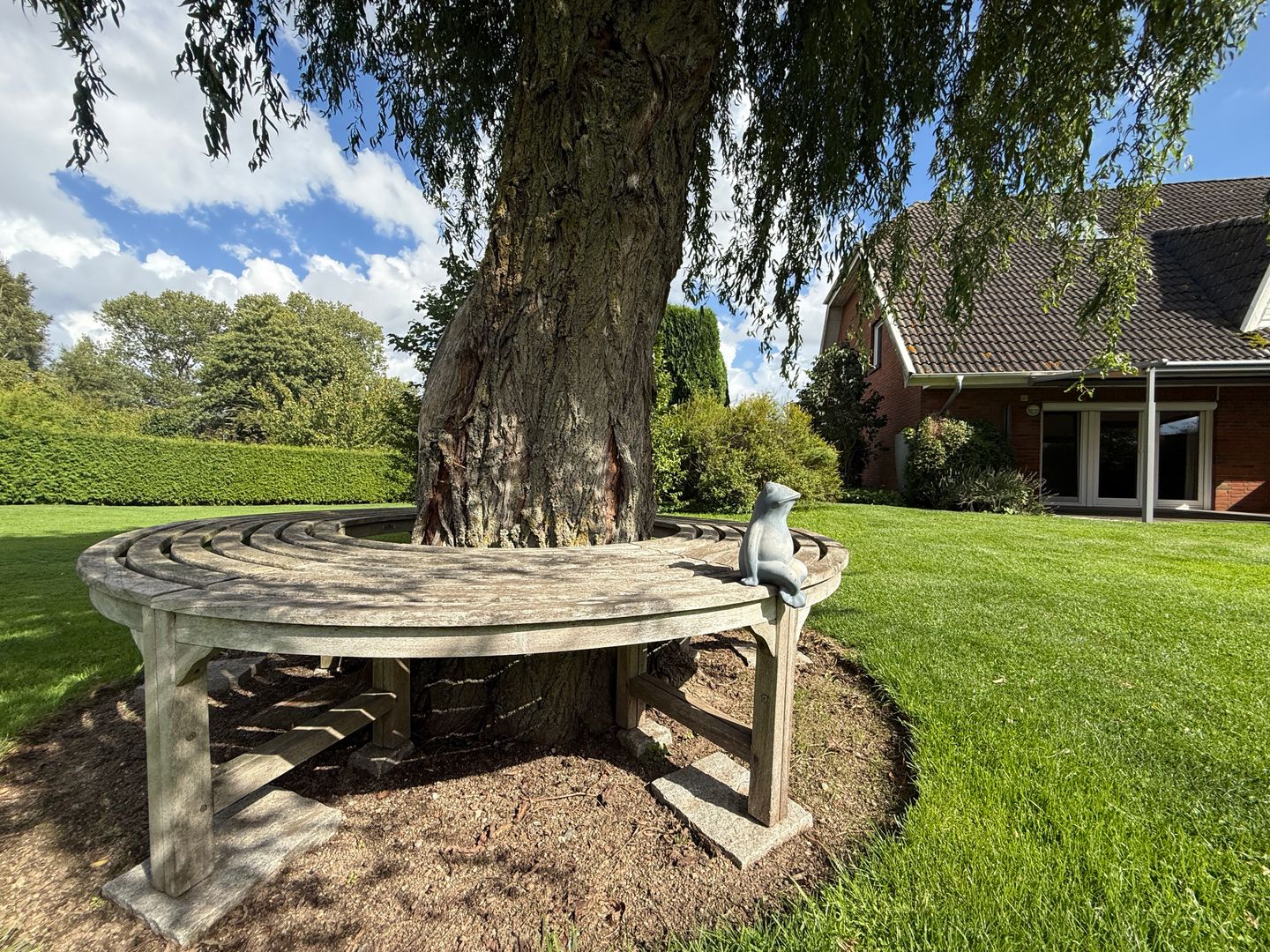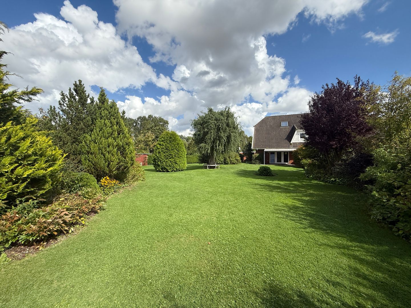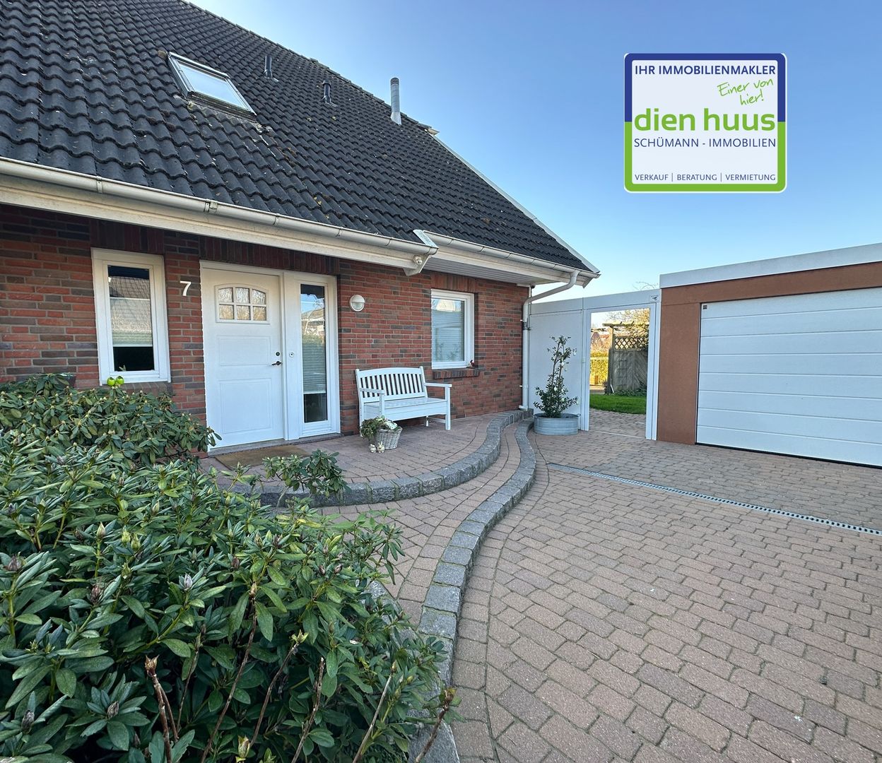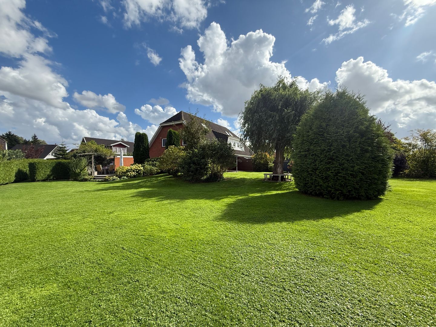 Das Grundstück ist komplett eingefriedet und wird derzeit von einem Mähroboter gepflegt, dieser kann mit übernommen werden. Zwischen der Garage und dem Wohnhaus wurde ein Wandanschluss hergestellt mit Nebeneingangstür zum Grundstück.