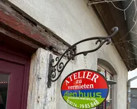 Das Atelier erstreckt sich über zwei Etagen und verfügt über ca. 40qm und einem WC. Hier können Sie Ihrer Kunst freien Lauf lassen.
