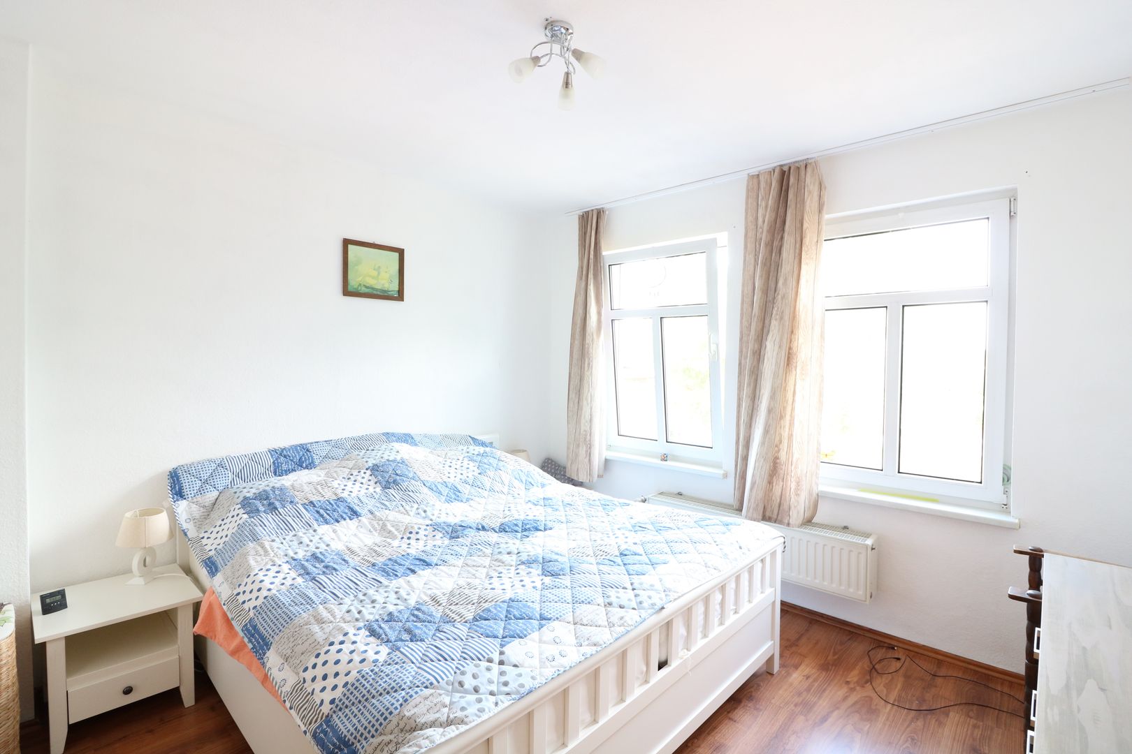 Das Nebengebäude teilt sich auf 2 Parteien auf. Die 3-Raum Wohnung im Erdgeschoss verfügt über ca. 60 qm und wurde 2021 saniert. Die Wohnung im Obergeschoss verfügt über ca. 87 qm und wurde 2017 saniert. Diese wird derzeit als Ferienwohnung vermietet. Die Wohnung verfügt neben einem Schlafzimmer, einem Wohnbereich mit angrenzender Küche und einem Badezimmer, über einen Schlafboden. Dieser wird über eine Leiter erreicht. Der Schlafboden hat eine Deckenhöhe von ca. 1,30-1,50m und teilt sich auf 2 Schlafzimmer auf.