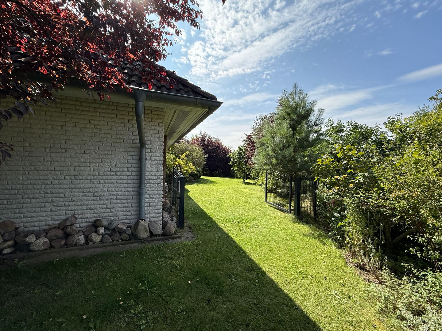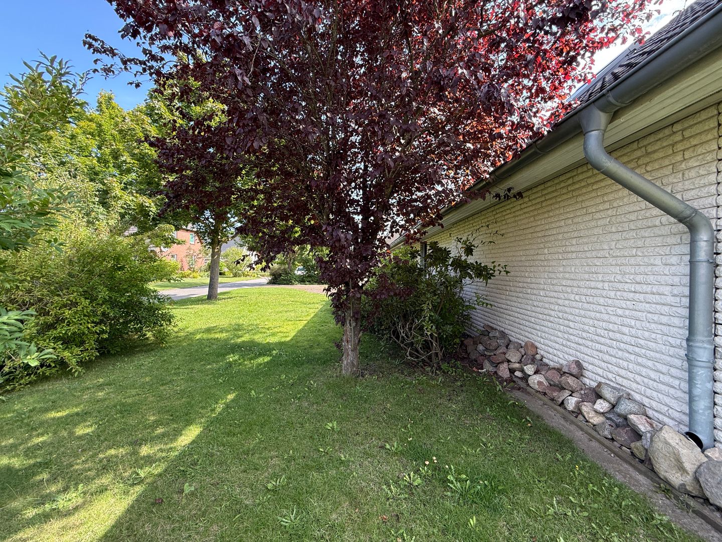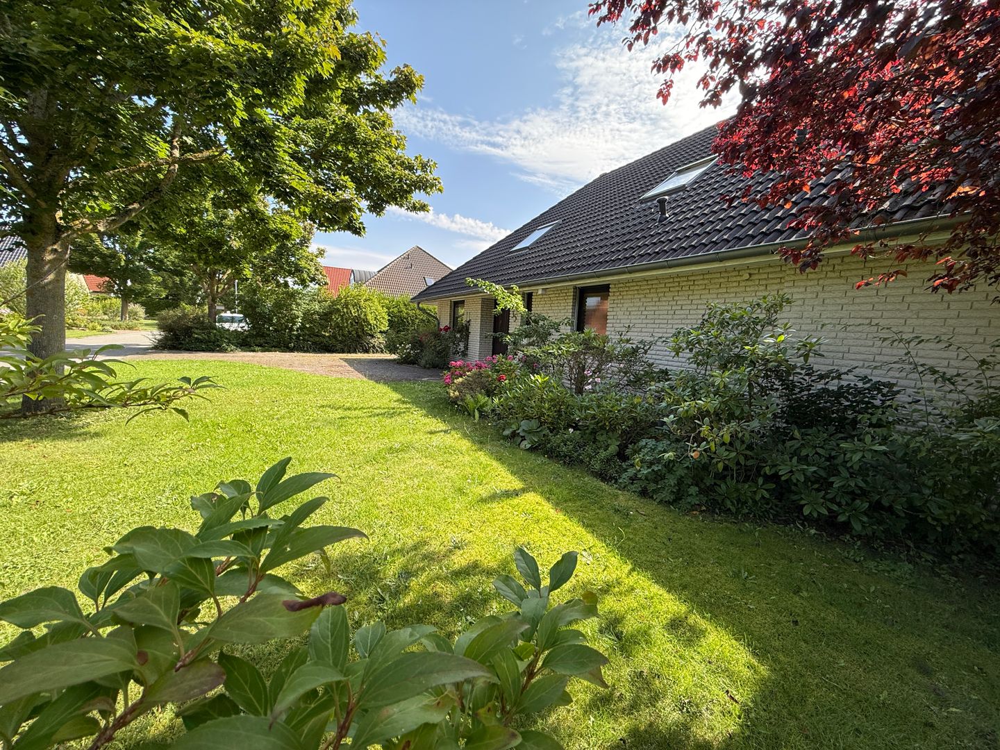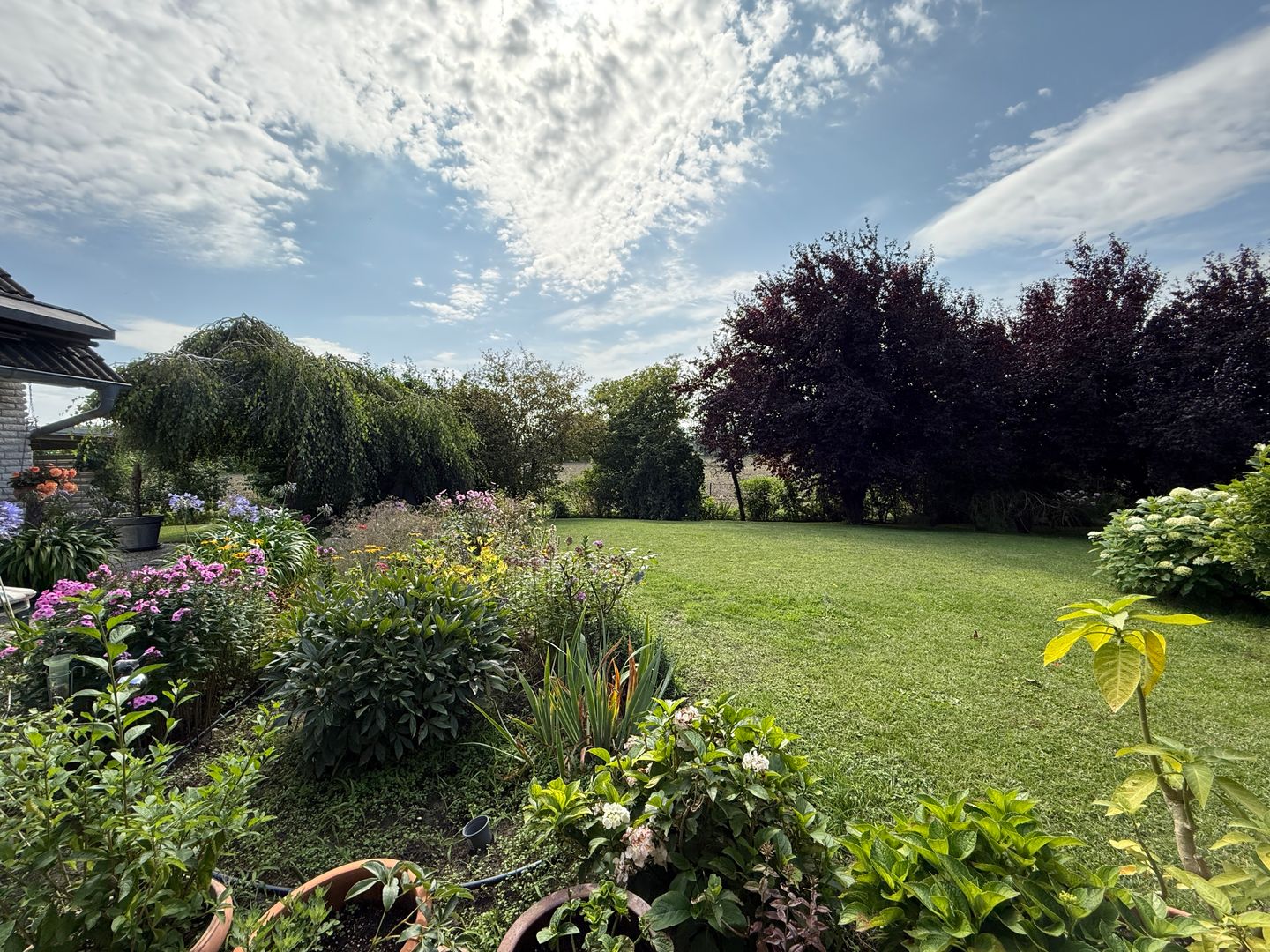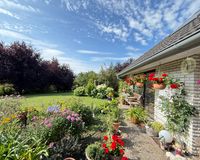 Das 1998 errichtete Haus empfängt Sie mit einem liebevoll angelegten Garten und einem unverbauten Blick über bunte Blumenbeete bis hin zum weiten Feld. Die großzügige Terrasse bietet Sonne von morgens bis abends und wird dank des üppigen Baumbestands zur privaten Ruheoase. Hinter dem Gartenzaun beginnt die Natur – Vogelsang, Felder und Gärten statt Autoverkehr – so dass Kinder gefahrlos spielen können und Ruhesuchende entspannen.