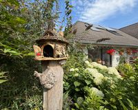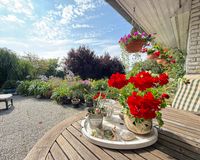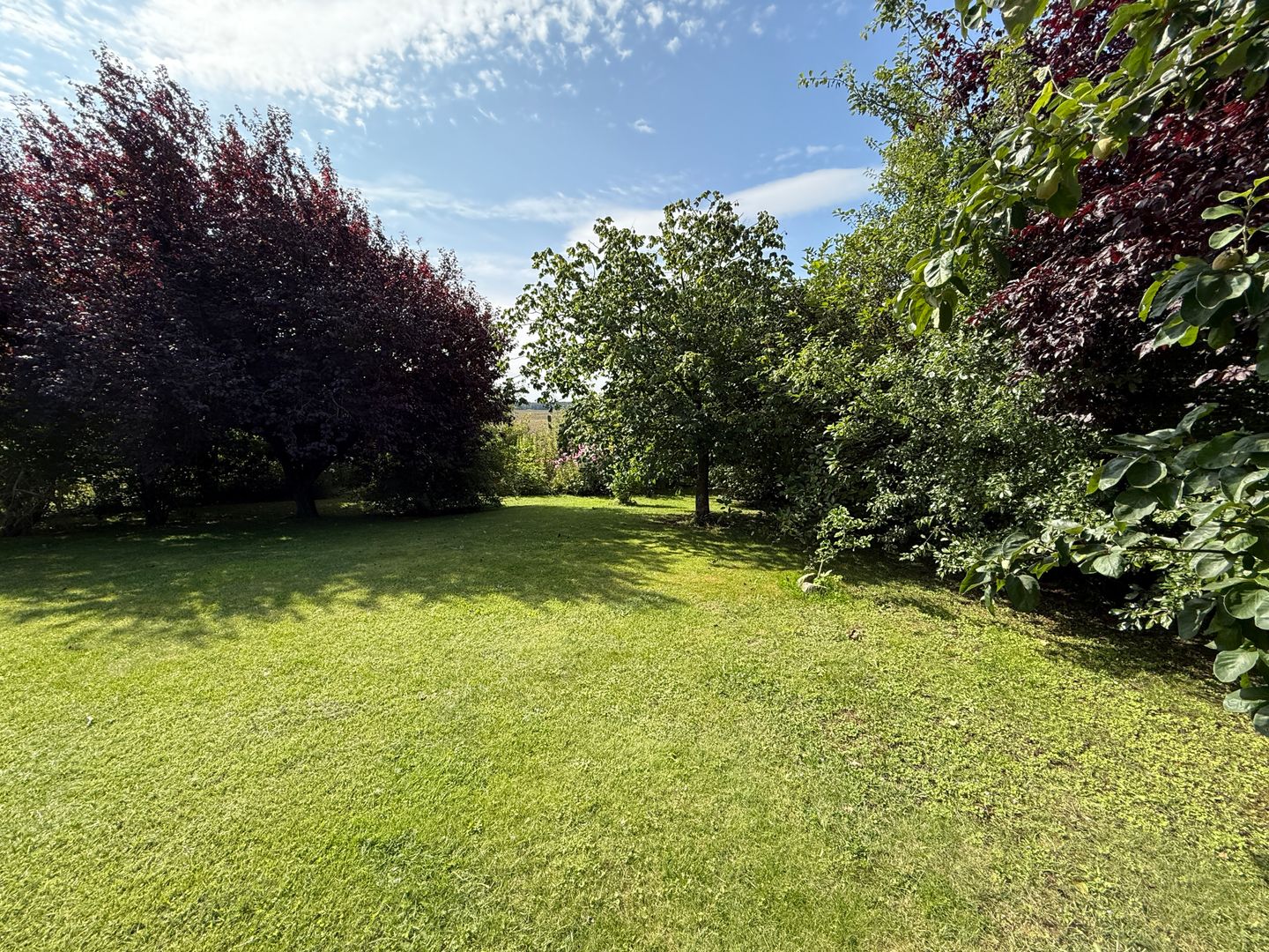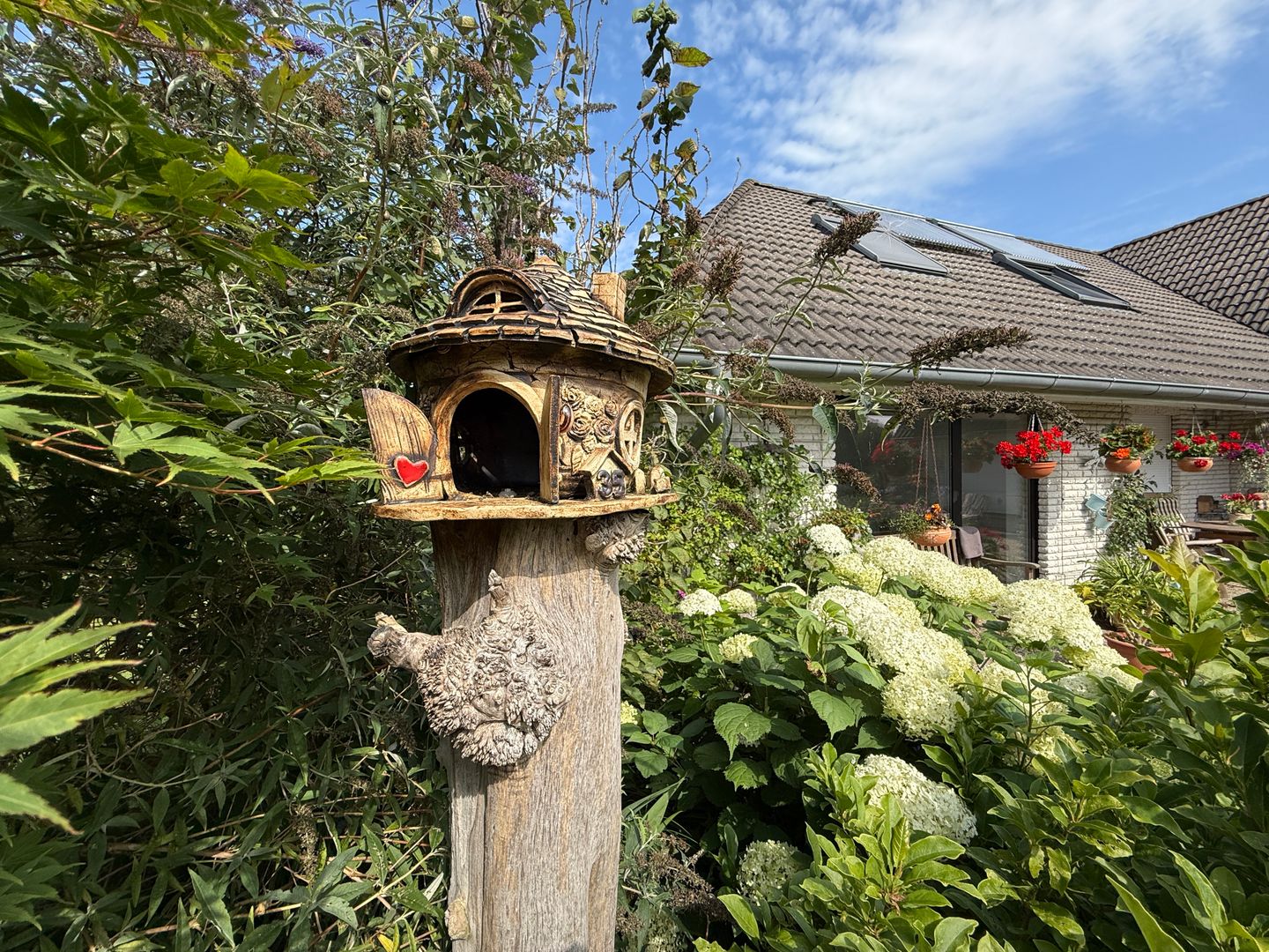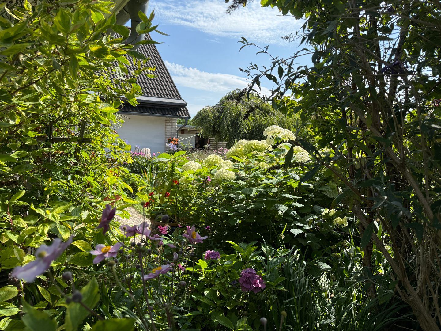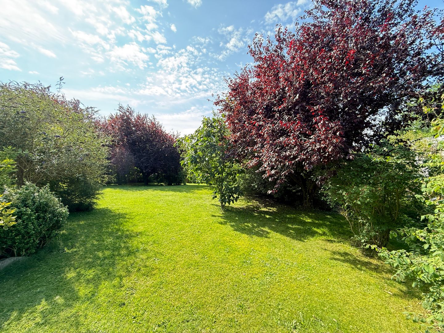 Das 1998 errichtete Haus empfängt Sie mit einem liebevoll angelegten Garten und einem unverbauten Blick über bunte Blumenbeete bis hin zum weiten Feld. Die großzügige Terrasse bietet Sonne von morgens bis abends und wird dank des üppigen Baumbestands zur privaten Ruheoase. Hinter dem Gartenzaun beginnt die Natur – Vogelsang, Felder und Gärten statt Autoverkehr – so dass Kinder gefahrlos spielen können und Ruhesuchende entspannen.