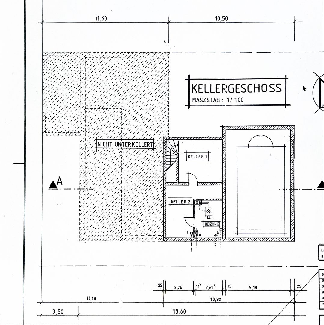Zurück in den Eingangsbereich führt Sie eine Treppe in den Keller, dieser ist sehr großzügig und bietet derzeit viel Abstellmöglichkeiten, beherbergt die Heizung und auch die gesamte Anlagentechnik für den Innenpool (Filteranlage ect.).