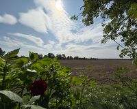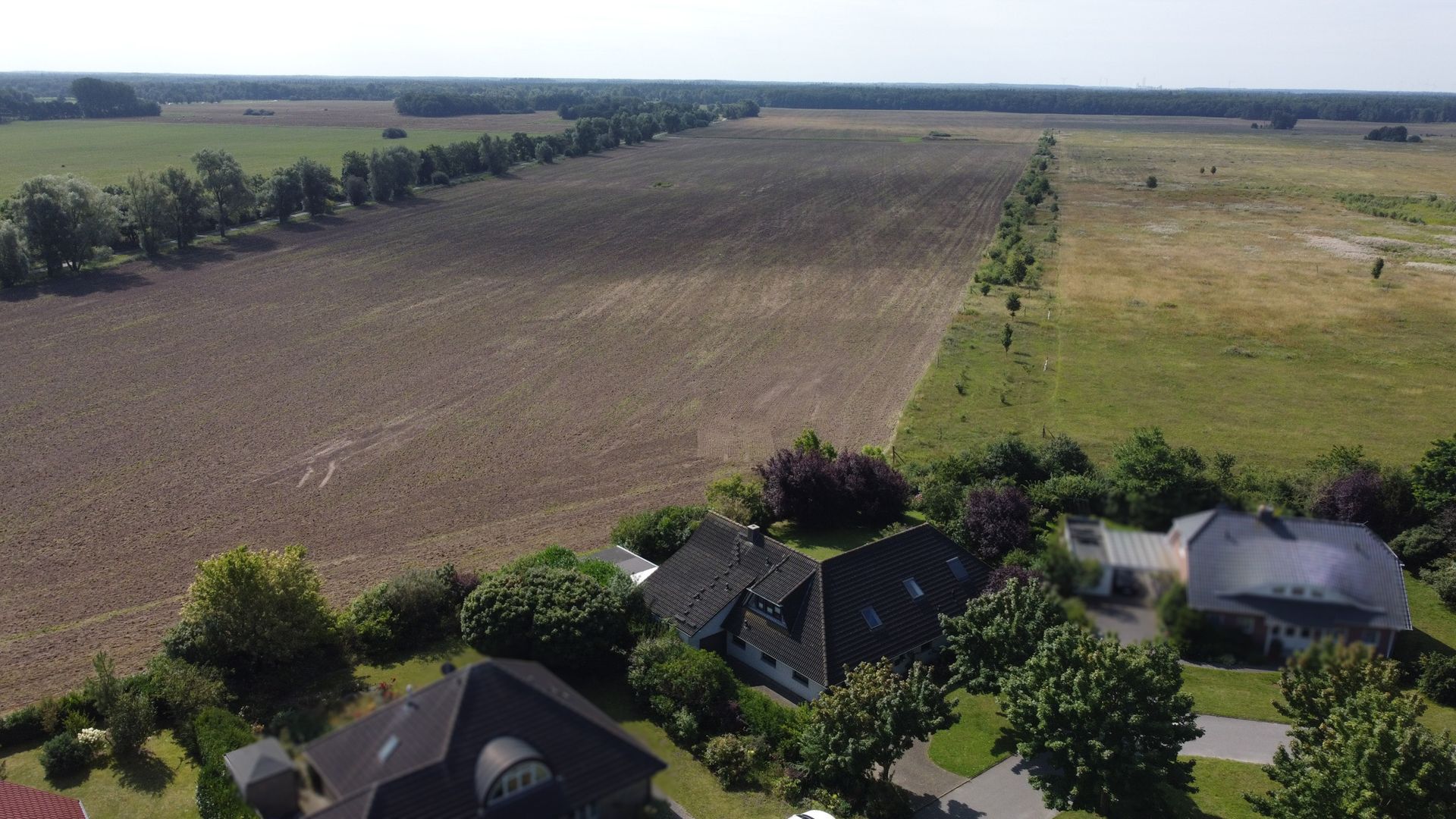 + Panoramablick auf Wiesen und Felder vom Obergeschoss